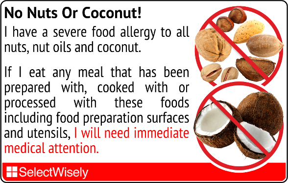 Nuts and Coconut Allergy Translation Card | Nut Allergies | Food Allergies | SelectWisely